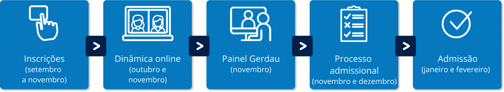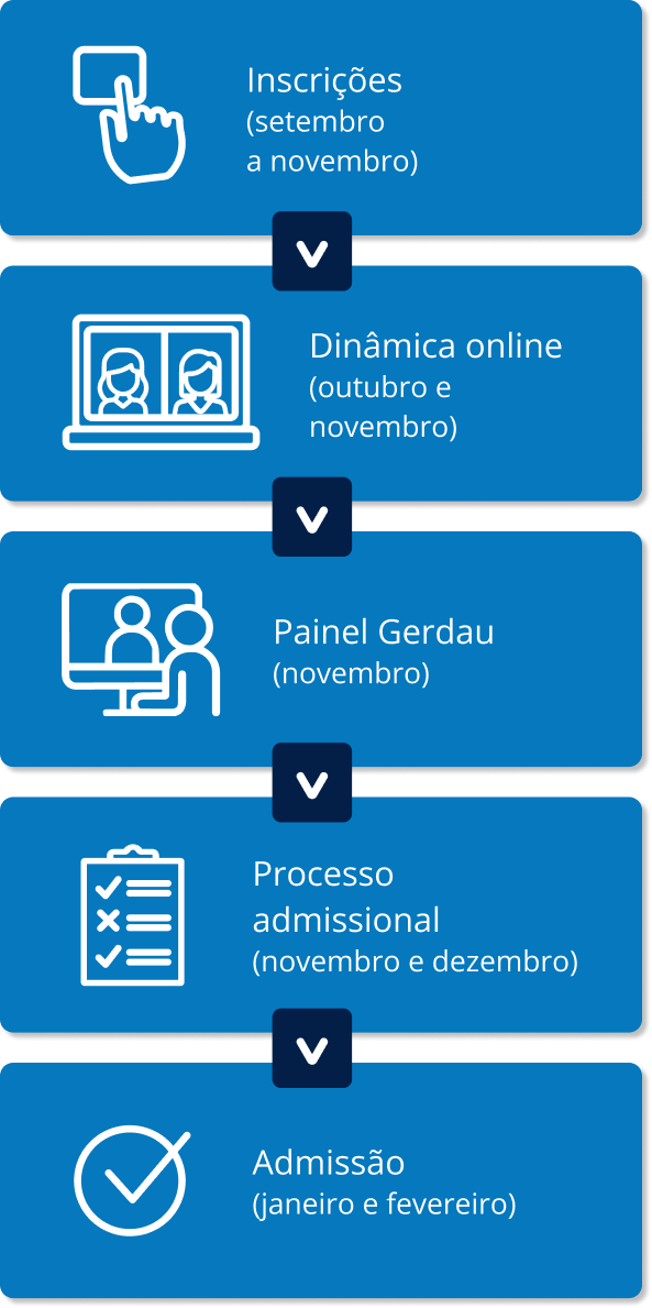 Além disso, todo o aprendizado teórico será colocado em prática no seu dia a dia na Gerdau. Vem com a gente?